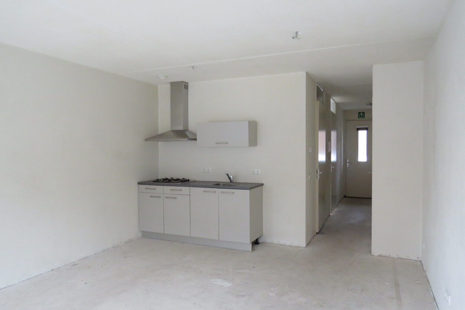 Deze woning is gelegen op de eerste etage. De woonkamer beschikt over een open keuken met gasfornuis en afzuigkap. Vanuit de woonkamer kun je naar het balkon. Vanuit de hal bereik je de badkamer (voorzien van douche, toilet en wastafel) en slaapkamer.