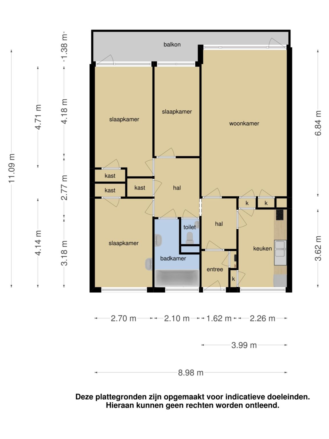 Alle informatie is met de grootst mogelijke zorg samengesteld. Helaas kunnen wij niet altijd voorkomen dat de informatie enigszins afwijkt van de werkelijkheid. In sommige gevallen worden foto’s gebruikt van een soortgelijke woning of appartement en dienen als impressie. Aan de teksten, plattegronden, foto’s en maatvoeringen kunnen geen rechten worden ontleend.