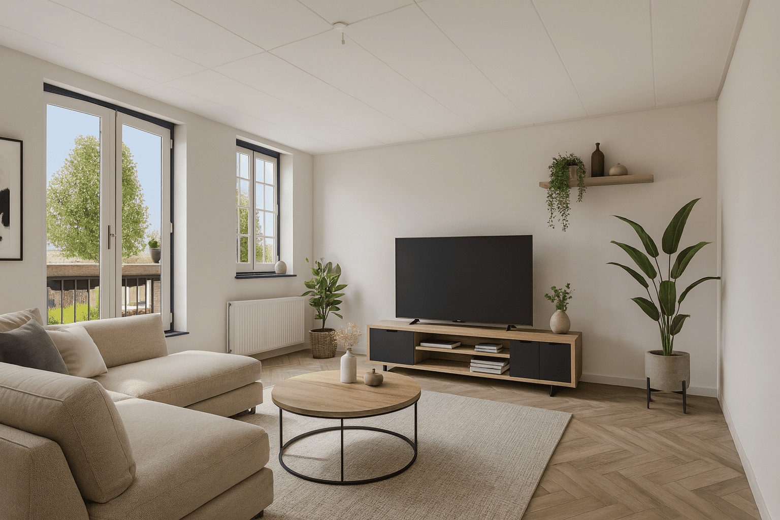 De woonkamer biedt volop mogelijkheden om helemaal naar eigen smaak in te richten. Dankzij de unieke indeling kun je een gezellige zithoek creëren met een ruime hoekbank en een televisie, terwijl er nog steeds voldoende ruimte overblijft om te leven en te ontspannen. Daarnaast is een kamer-en-suite een mooie optie om de ruimte functioneel en stijlvol in te delen.