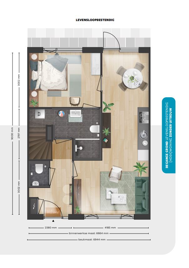 Levensloopbestendig: wonen, slapen en badkamer op de begane grond