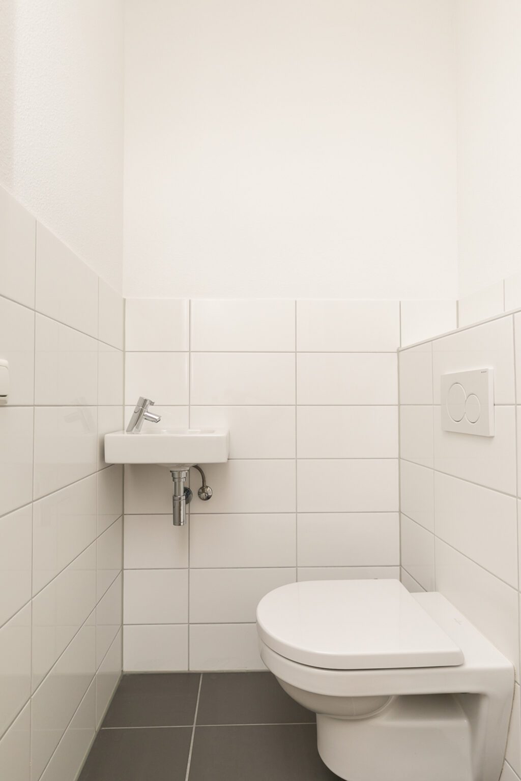 Volledig betegelde badkamer met A-merk sanitair (Sphinx, Villeroy & Boch en Grohe)