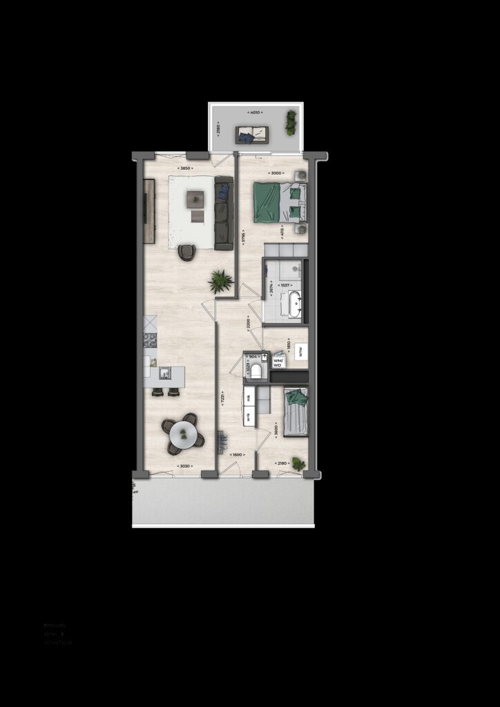 Het appartement beschikt verder over 2 slaapkamers, een frisse badkamer met douche en dubbele wastafel, én een separaat toilet. Praktisch is de aparte berging met ruimte voor zowel een wasmachine als droger.