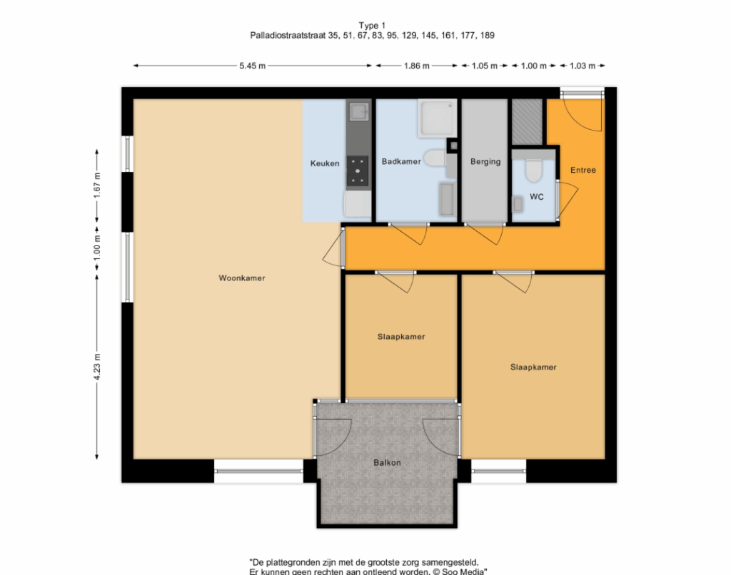 Alle informatie is met de grootst mogelijke zorg samengesteld. Helaas kunnen wij niet altijd voorkomen dat de informatie enigszins afwijkt van de werkelijkheid. In sommige gevallen worden foto’s gebruikt van een soortgelijke woning of appartement en dienen als impressie. Aan de teksten, plattegronden, foto’s en maatvoeringen kunnen geen rechten worden ontleend.