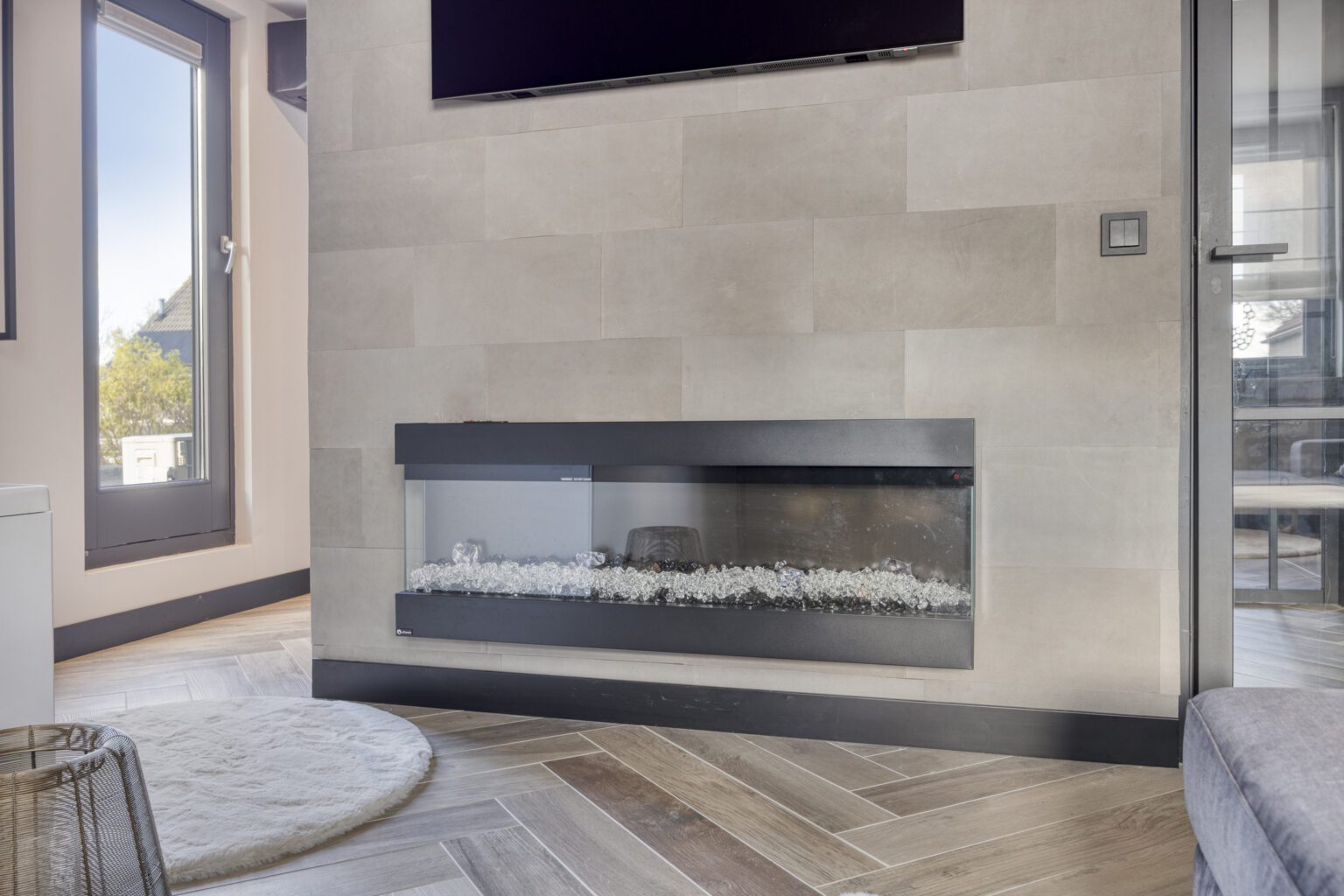 De begane grond beschikt over vloerverwarming, wat zorgt voor een gelijkmatige warmte en een opgeruimde uitstraling zonder radiatoren.
