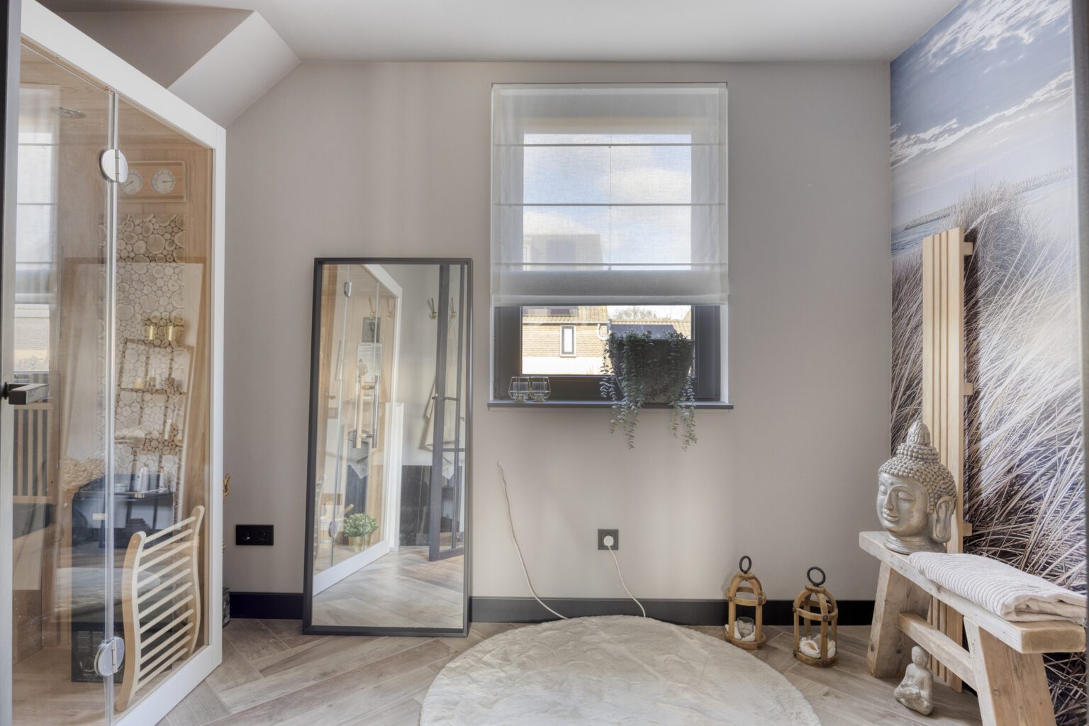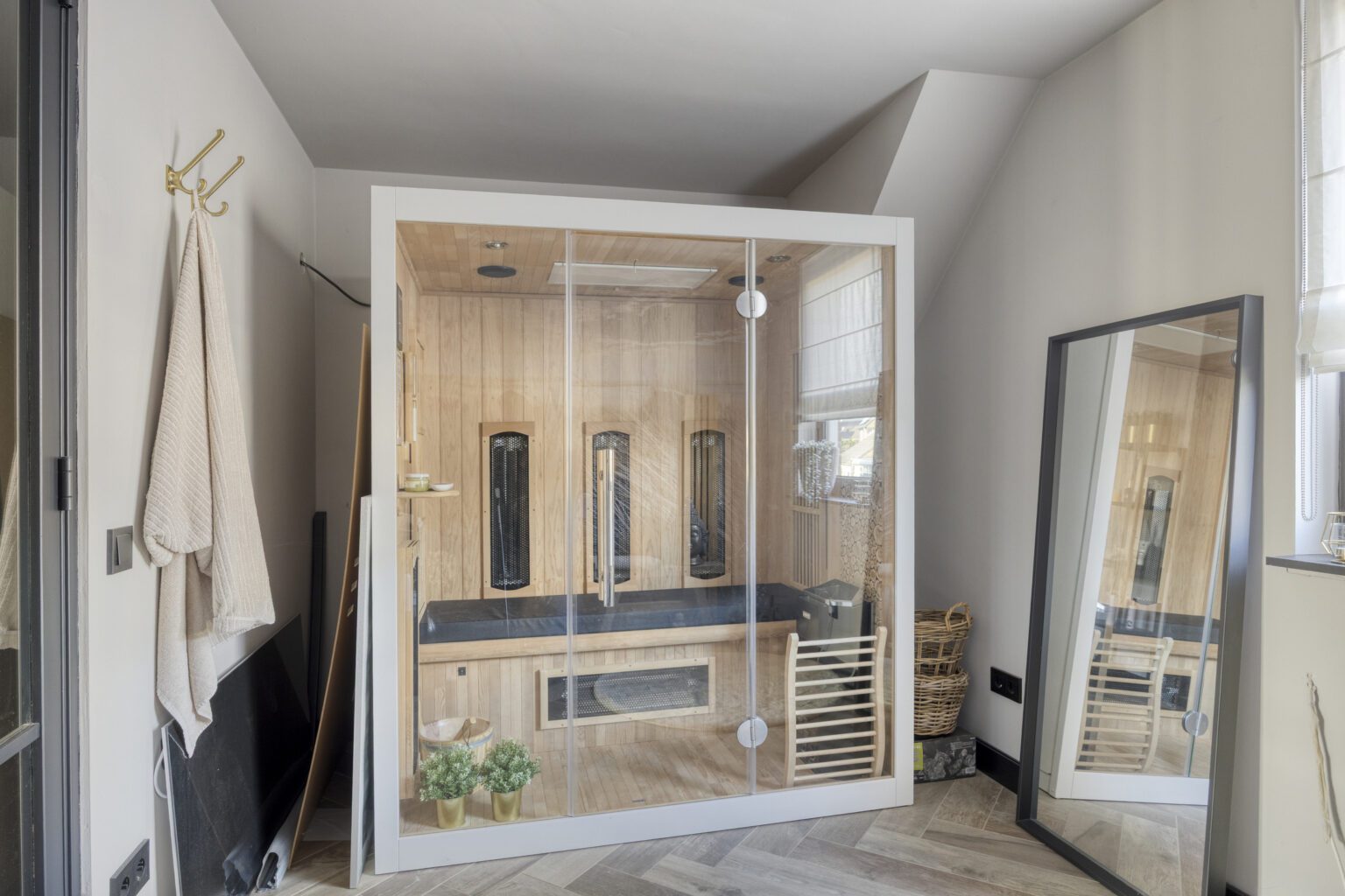 De andere ruimte mag ook zeker niet ontbreken: hier vind je namelijk een sauna, een heerlijke plek om te ontspannen, vooral tijdens de koude maanden. Deze verdieping vormt samen een volwaardige wellness-etage waar ultiem ontspannen centraal staat!
