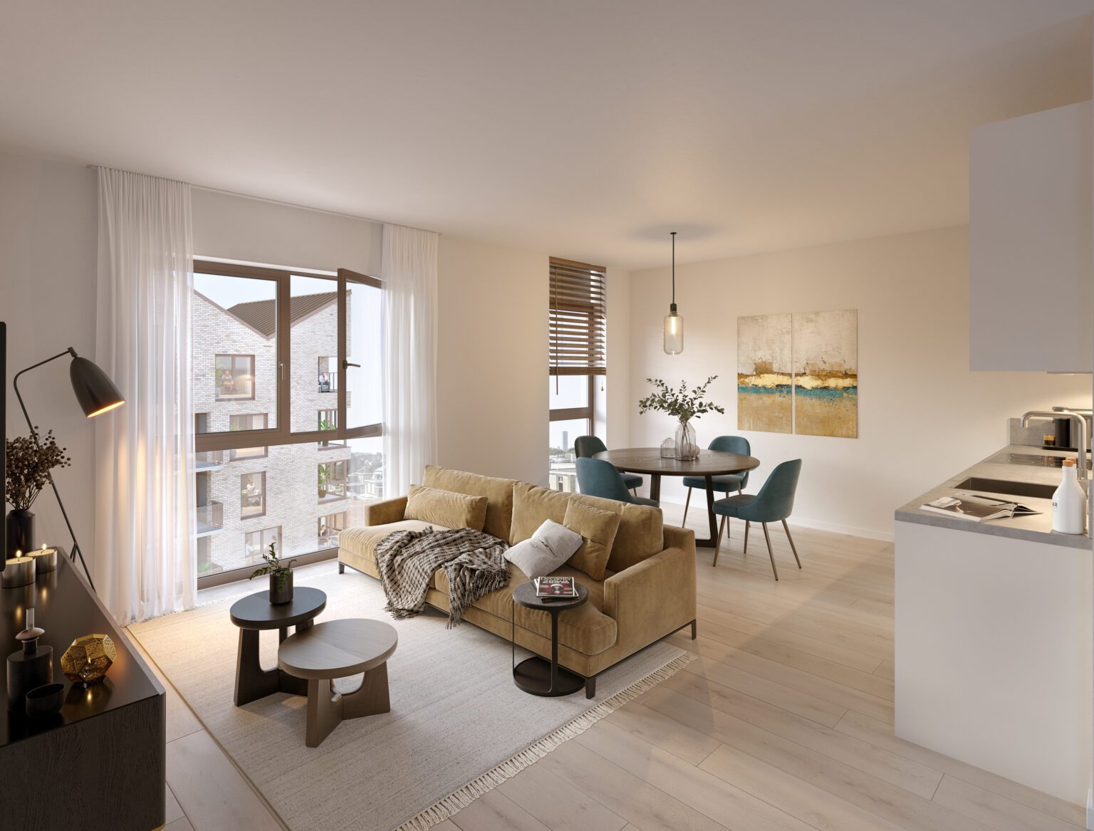 Het appartement biedt een hoog wooncomfort dankzij de kwalitatieve afwerking. Er zijn twee ruime slaapkamers, een stijlvolle woonkamer en een moderne open keuken van Novitelli, uitgerust met inbouwapparatuur van Whirlpool. De badkamer is voorzien van sanitair van Villeroy & Boch en er is een separaat toilet voor extra gemak. Daarnaast beschikt het appartement over een aparte berging met aansluitingen voor een wasmachine en droger.