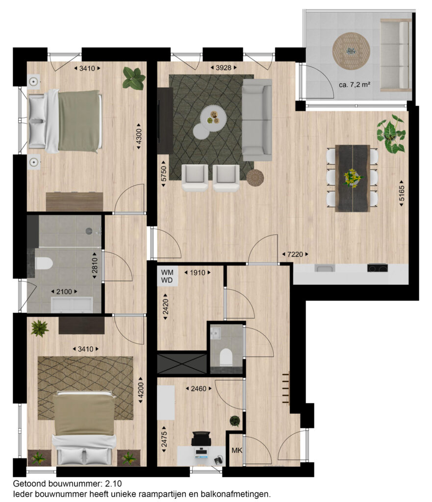Alle informatie is met de grootst mogelijke zorg samengesteld. Helaas kunnen wij niet altijd voorkomen dat de informatie enigszins afwijkt van de werkelijkheid. In sommige gevallen worden foto’s gebruikt van een soortgelijke woning of appartement en dienen als impressie. Aan de teksten, plattegronden, foto’s en maatvoeringen kunnen geen rechten worden ontleend.