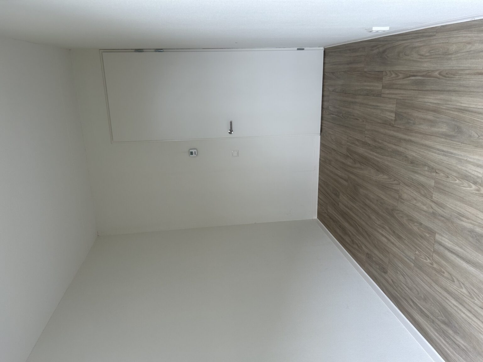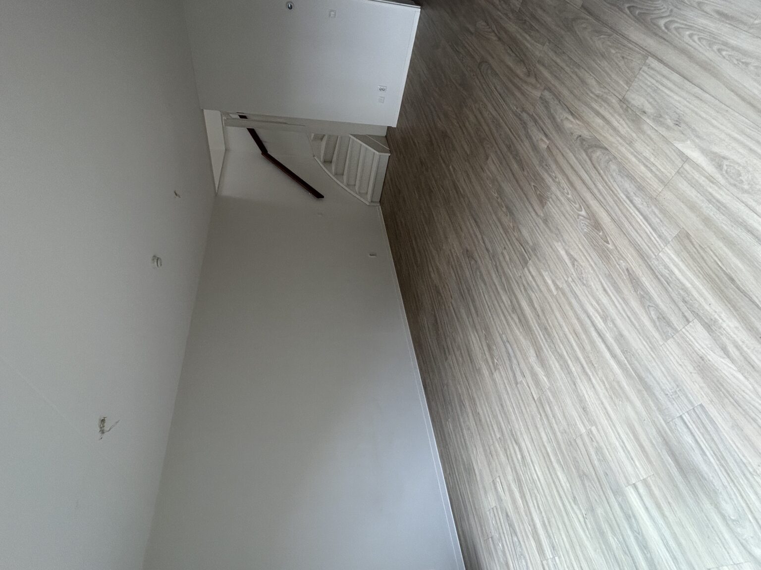 – op de vloer ligt een luxe PVC vloer met houtlook en de wanden zijn afgewerkt en geschilderd