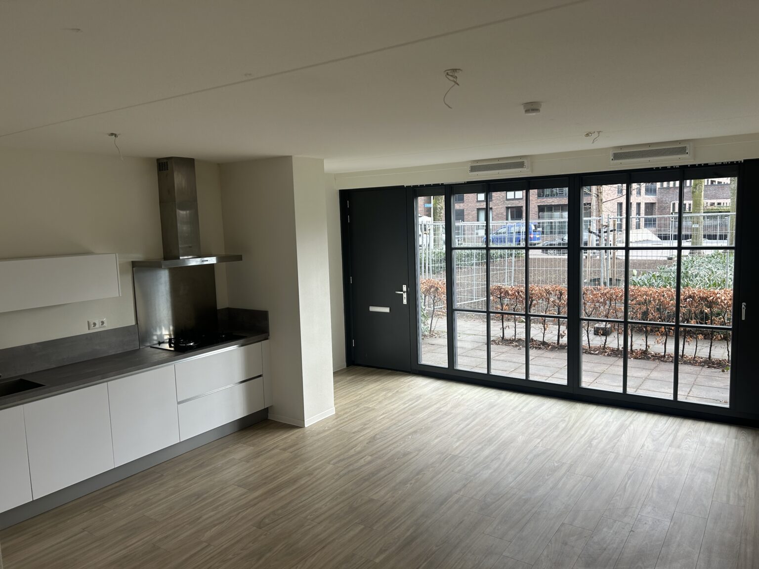 Kom binnen in een lichte living met grote glazen pui, moderne open keuken voorzien van inbouwapparatuur zoals 4 pits kooktoestel, koelkast, combi magnetron en vaatwasser. Daarnaast is er een apart toilet met fontein en kleine berging aanwezig. Via de vaste trap bereik je de 1e verdieping waar zich een compleet afgewerkte badkamer met inloopdouche, 2 slaapkamers en de stookruimte bevindt.