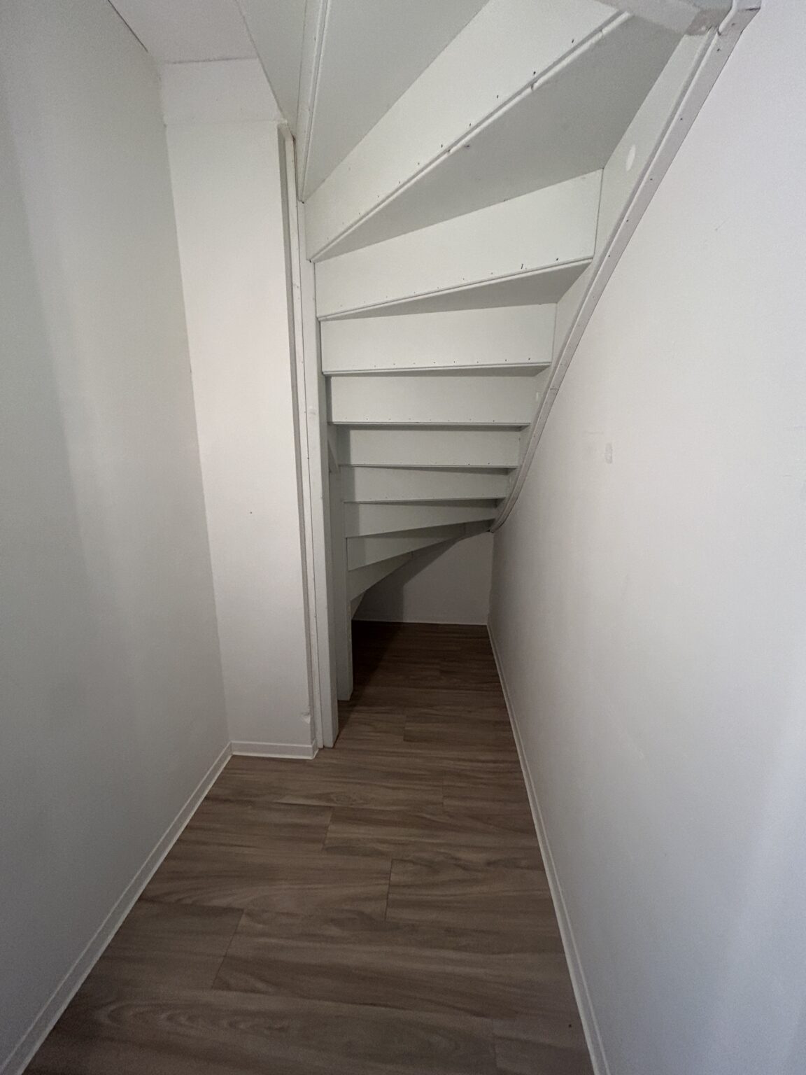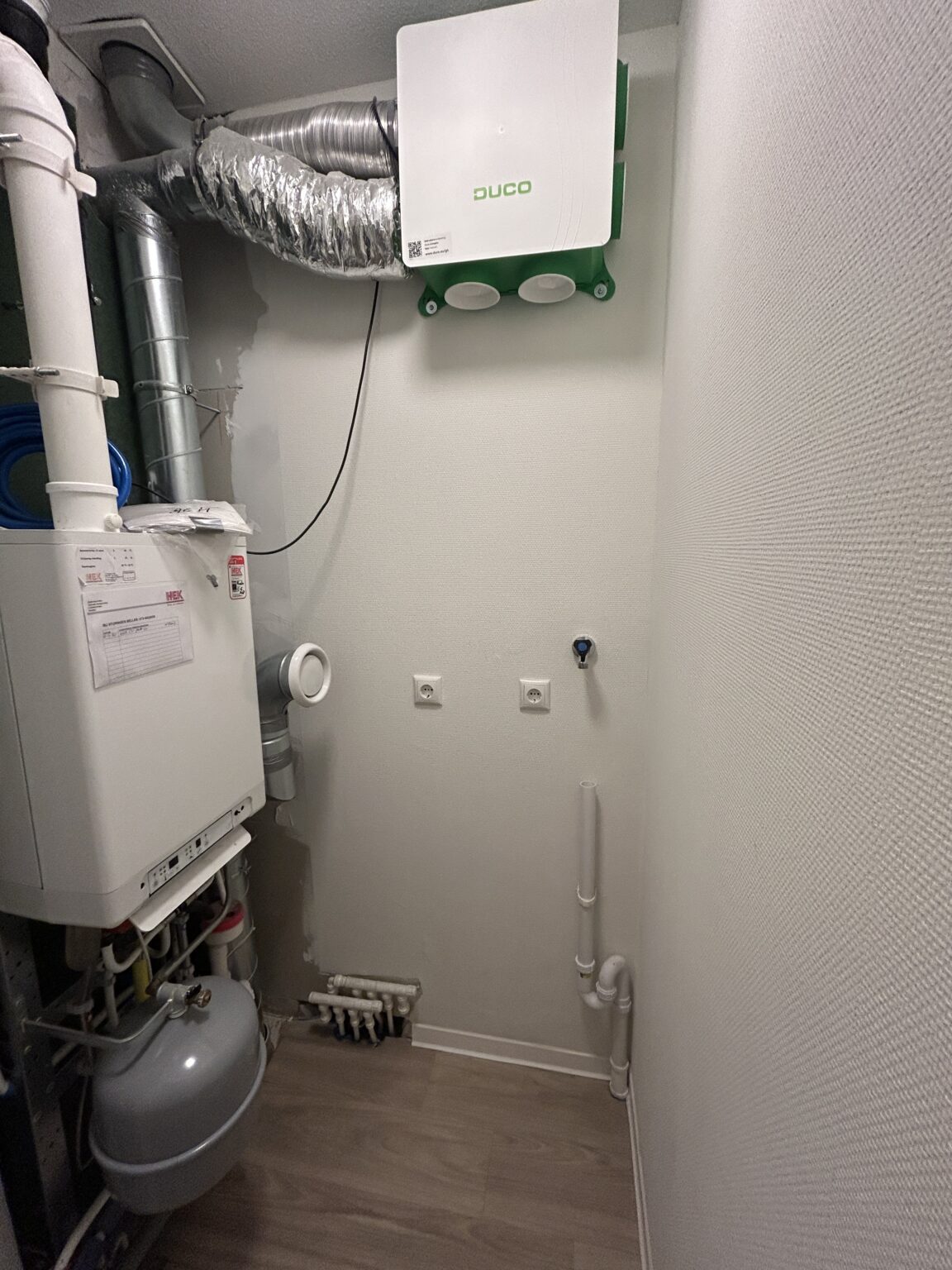 – op de vloer ligt een luxe PVC vloer met houtlook en de wanden zijn afgewerkt en geschilderd