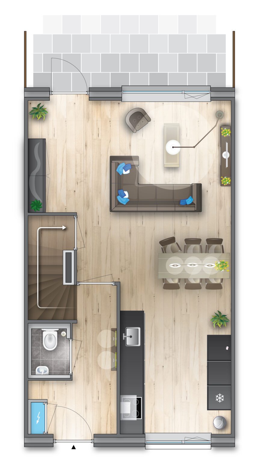 De getoonde foto’s en plattegronden dienen uitsluitend ter impressie. Hieraan kunnen geen rechten worden ontleend. Afmetingen en afwerking kunnen in de praktijk afwijken.