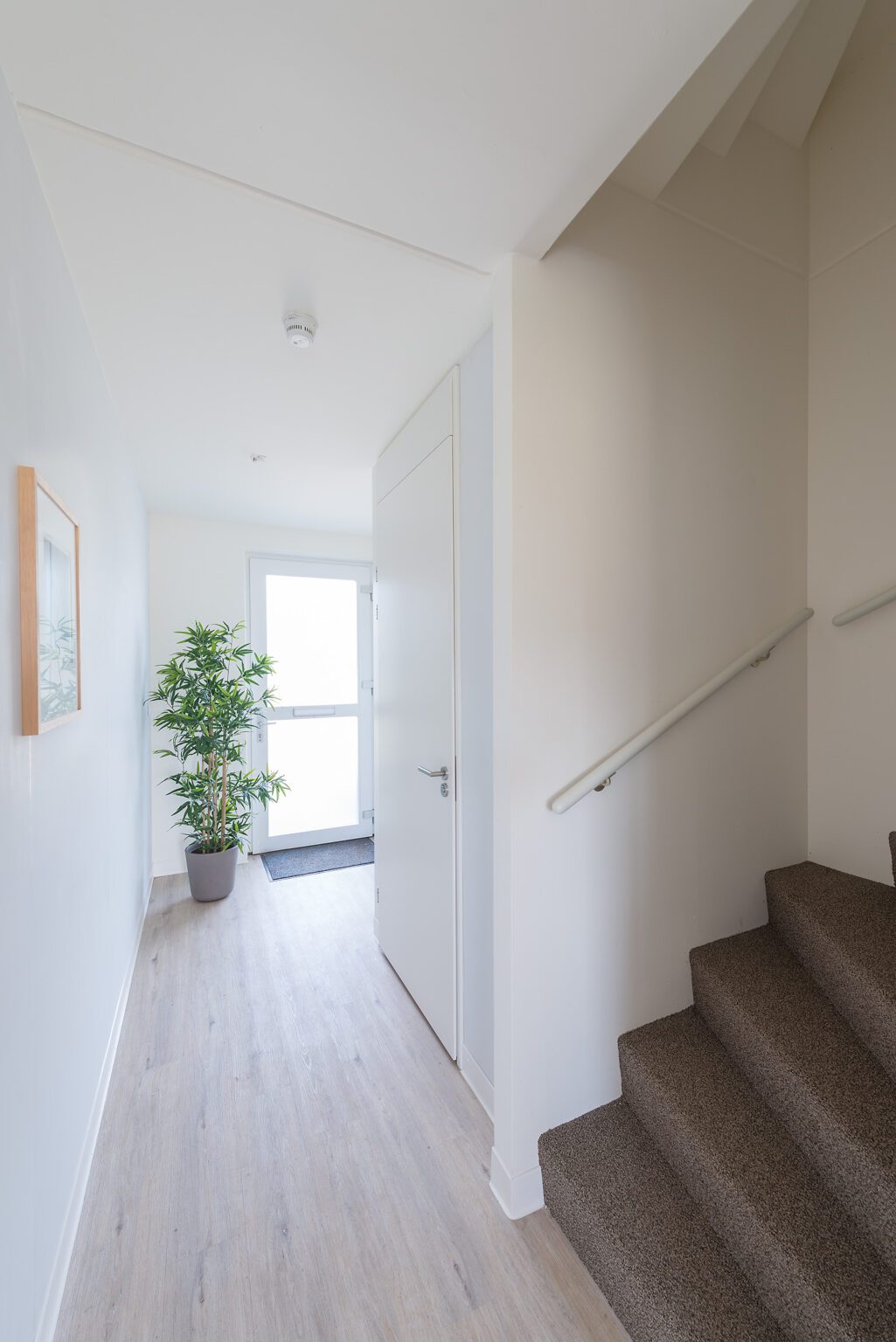 Ruime entreehal met toegang tot de lichte L-vormige woonkamer met open keuken.