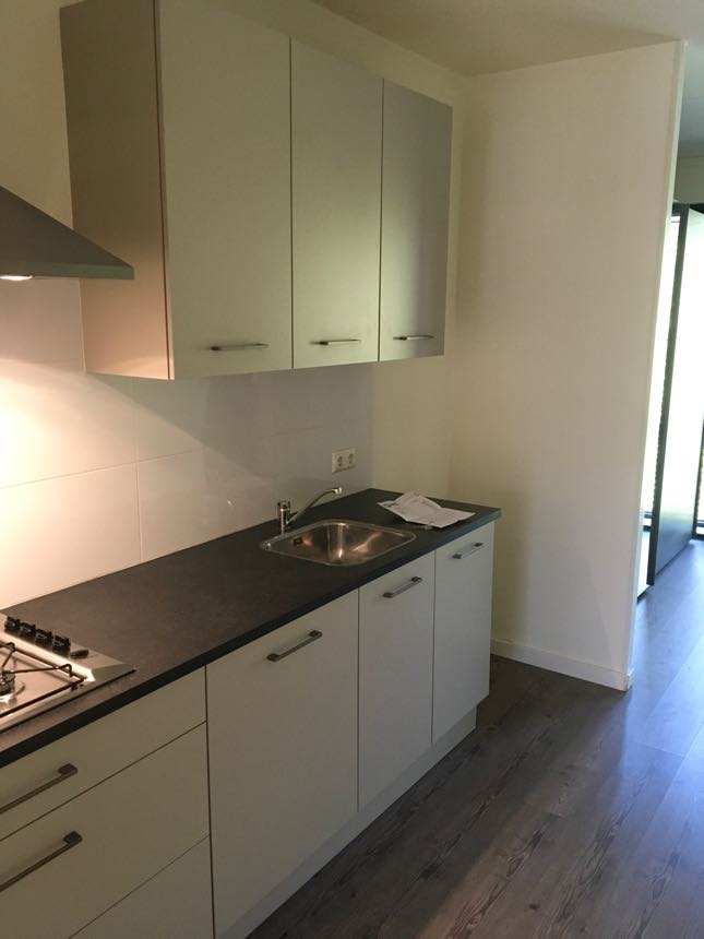Via de entree kom je loft binnen. De woonkamer staat in open verbinding met de keuken en de slaapkamer. Vanuit de woonkamer kijk je uit op het brede balkon met over de gehele breedte hoge ramen. Dit zorgt voor veel licht in de woning. In het midden van de woning is een blok geplaats met daarin de badkamer voorzien van toilet, wastafel en inloopdouche en de interne berging met de wasmachineaansluiting. Dit blok schermt de slaapkamer een beetje af van de overige ruimtes wat zorgt voor de gewenst privacy. Tegenover de badkamer is het keukenblok geplaats.