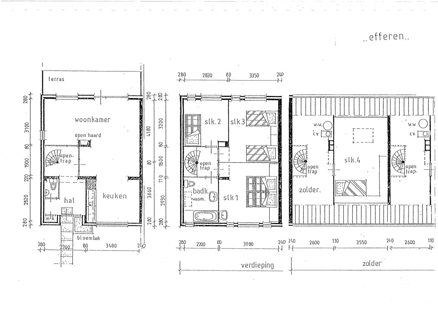1e Verdieping: Ruime overloop, twee grote slaapkamers en een kleinere slaapkamer. Badkamer is voorzien van ligbad, douche, wastafel en toilet.