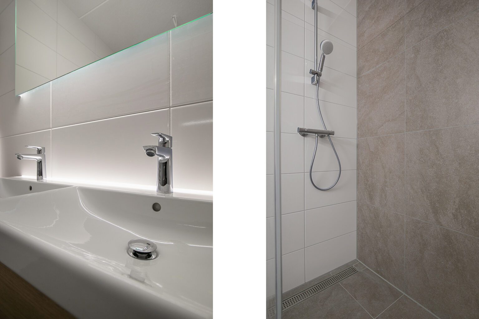 Er zijn twee goed formaat slaapkamers. De badkamer met inloopdouche en dubbele wastafel met meubel is goed afgewerkt. Er is een separaat toilet en een inpandige berging met de aansluiting voor de wasmachine.