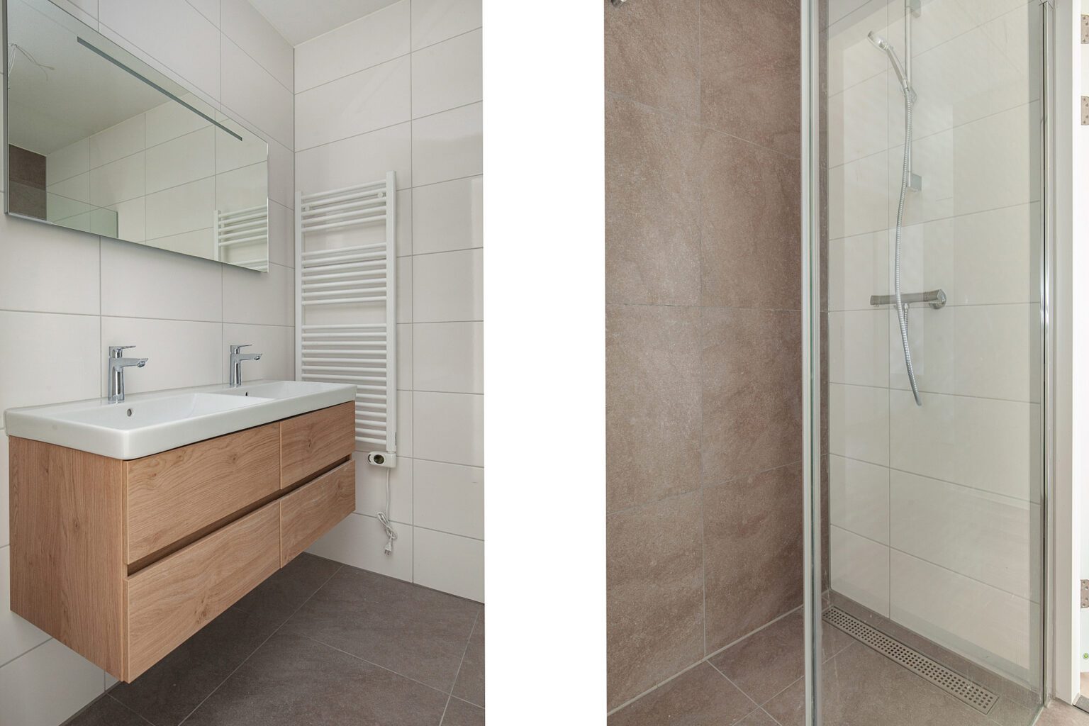 Er zijn twee goed formaat slaapkamers. De badkamer met inloopdouche en dubbele wastafel met meubel is goed afgewerkt. Er is een separaat toilet en een inpandige berging met de aansluiting voor de wasmachine.