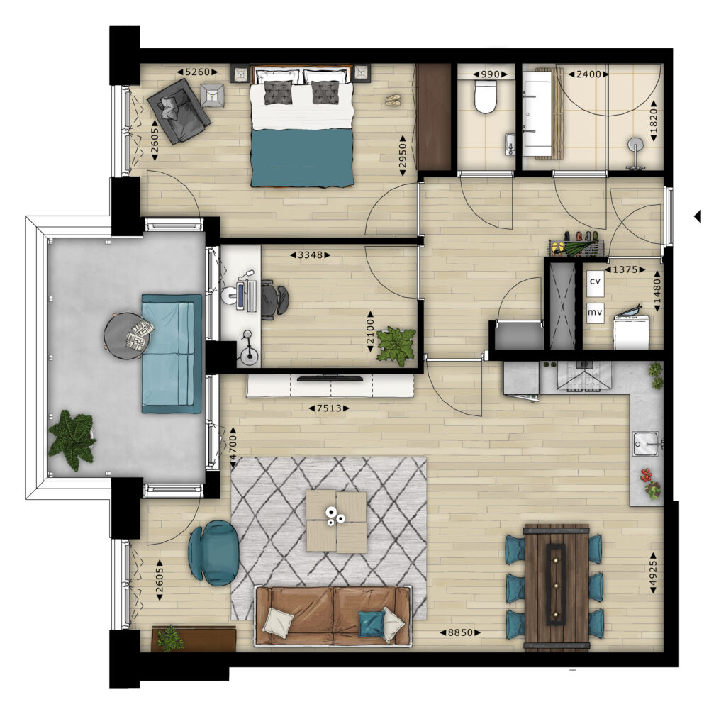 Alle informatie is met de grootst mogelijke zorg samengesteld. Helaas kunnen wij niet altijd voorkomen dat de informatie enigszins afwijkt van de werkelijkheid. In sommige gevallen worden foto’s gebruikt van een soortgelijke woning of appartement en dienen als impressie. Aan de teksten, plattegronden, foto’s en maatvoeringen kunnen geen rechten worden ontleend.