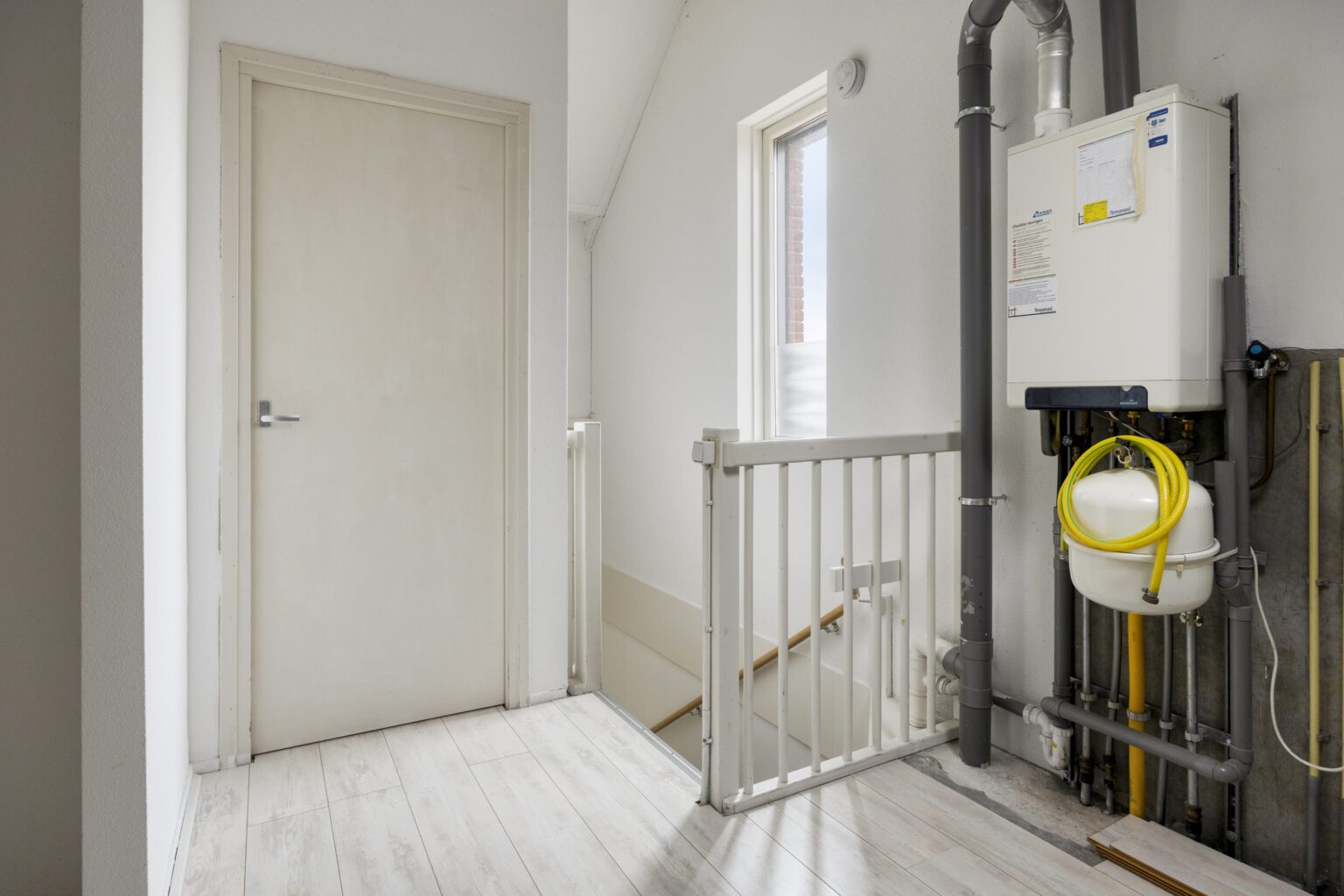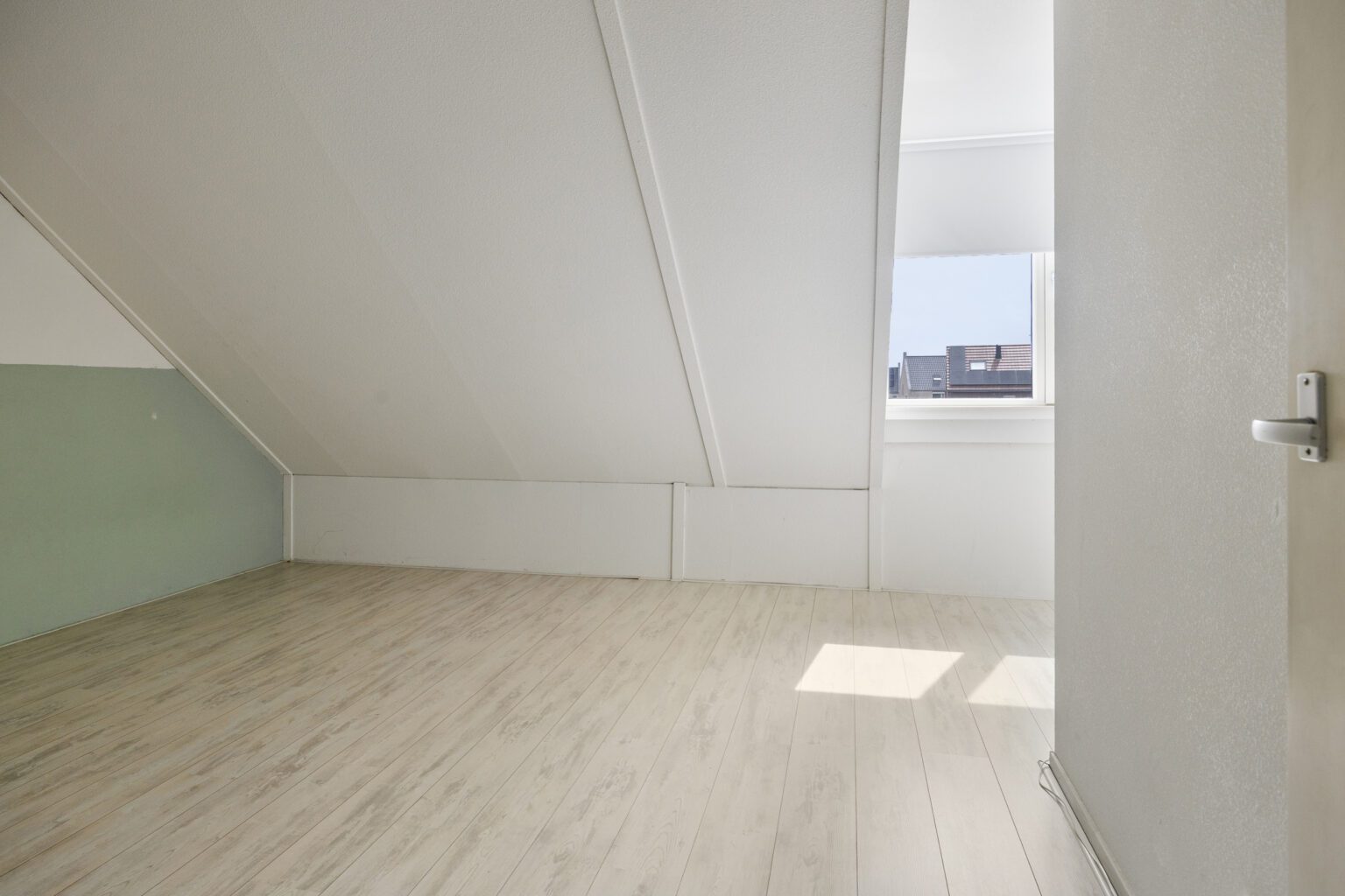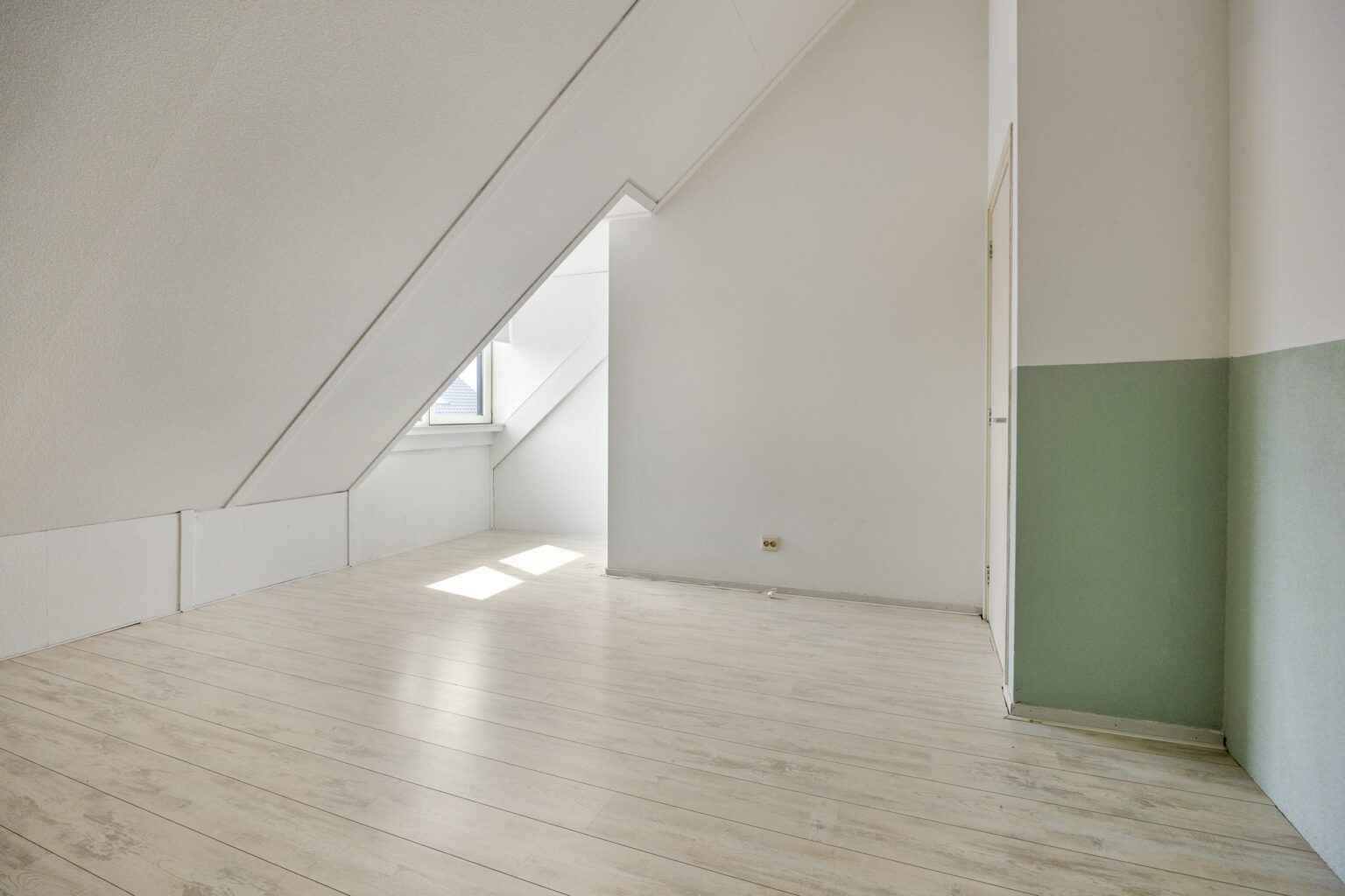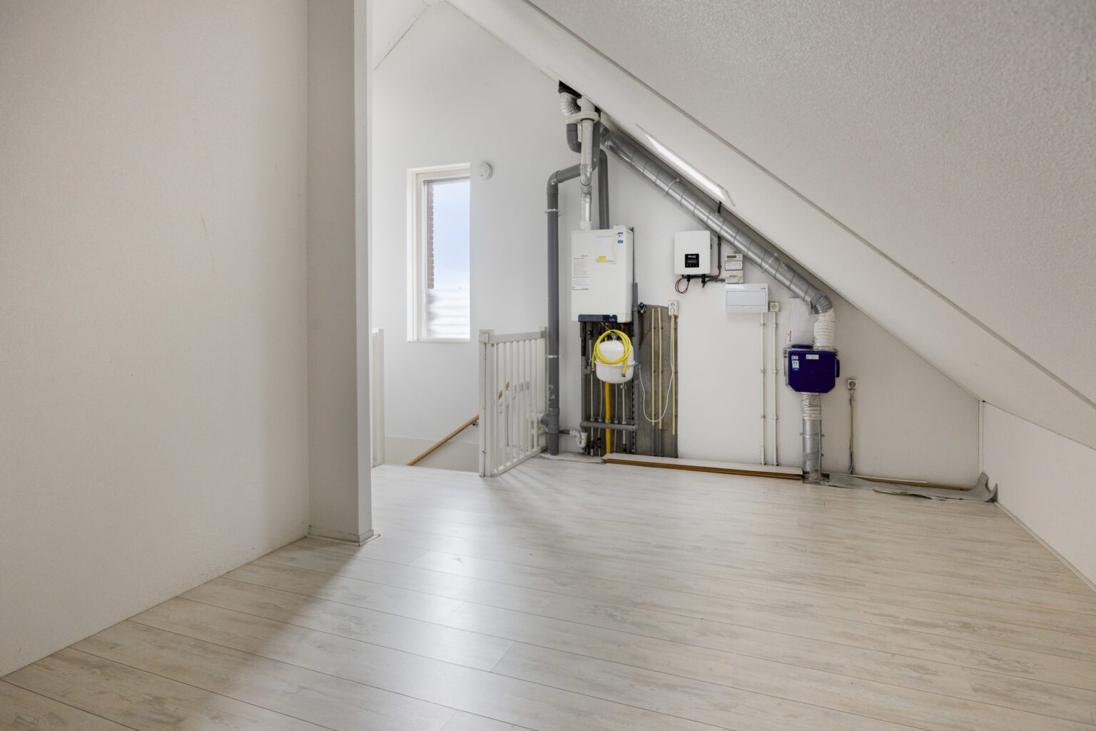 De verrassend ruime zolder is bereikbaar via een vaste trap en biedt volop mogelijkheden. De ruimte(s) zijn ideaal voor het creëren van een extra slaapkamer, thuiswerkplek, fitnessruimte of hobbyruimte. Hier vind je tevens de aansluitingen voor de wasmachine. In de hoek, direct onder de dakkapel, is een ideale plek om een werkplek te creëren. Dankzij het natuurlijke licht dat hier binnenvalt, is dit een prettige en functionele ruimte om te werken. Daarnaast zijn in deze ruimte ook de technische installaties geplaatst, zoals de cv-ketel, de omvormer voor de zonnepanelen en de ventilatie-unit.
