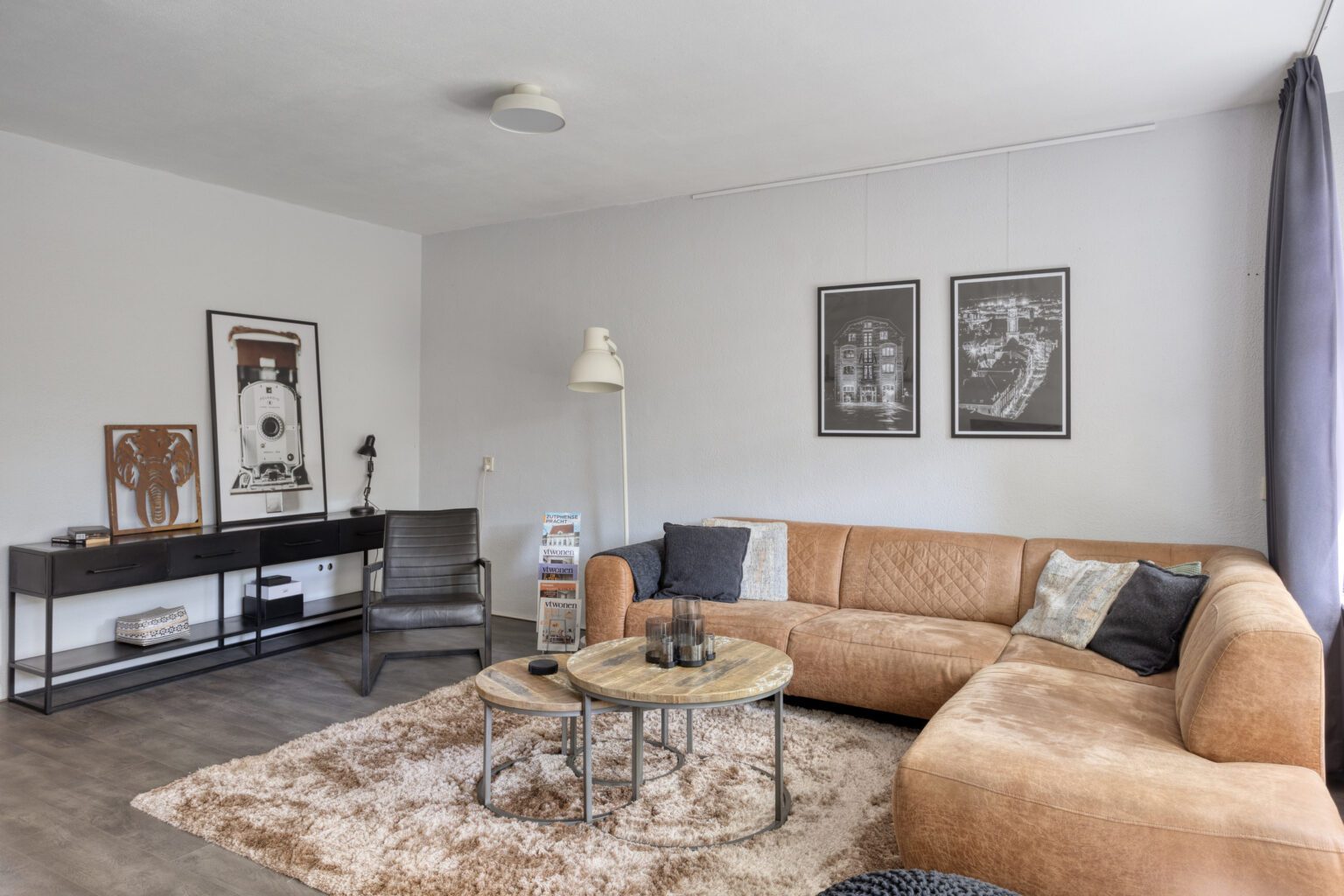 De sfeervolle woonkamer biedt verschillende indelingsmogelijkheden. Door de vele ramen en het doorlopende glas, valt er volop natuurlijk licht naar binnen. Er is genoeg ruimte voor een gezellige zithoek met een ruime loungebank en tv, ideaal voor avonden met vrienden en familie. Tussen de keuken en de woonkamer is een mooie plek voor een eettafel waar je gezellig kunt tafelen of uitgebreid dineren.