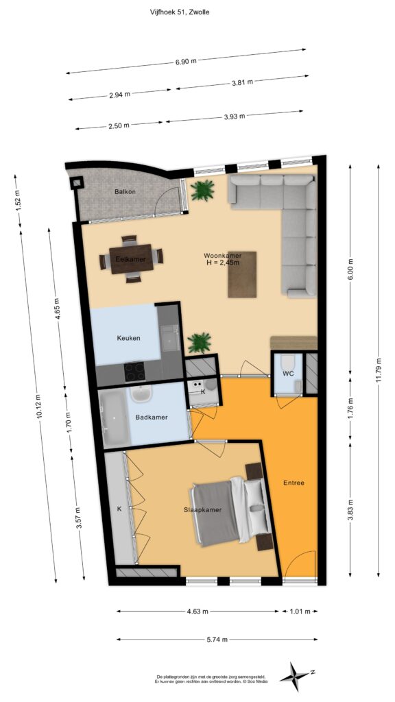 Alle informatie is met de grootst mogelijke zorg samengesteld. Helaas kunnen wij niet altijd voorkomen dat de informatie enigszins afwijkt van de werkelijkheid. In sommige gevallen worden foto’s gebruikt van een soortgelijke woning of appartement en dienen als impressie. Aan de teksten, plattegronden, foto’s en maatvoeringen kunnen geen rechten worden ontleend.
